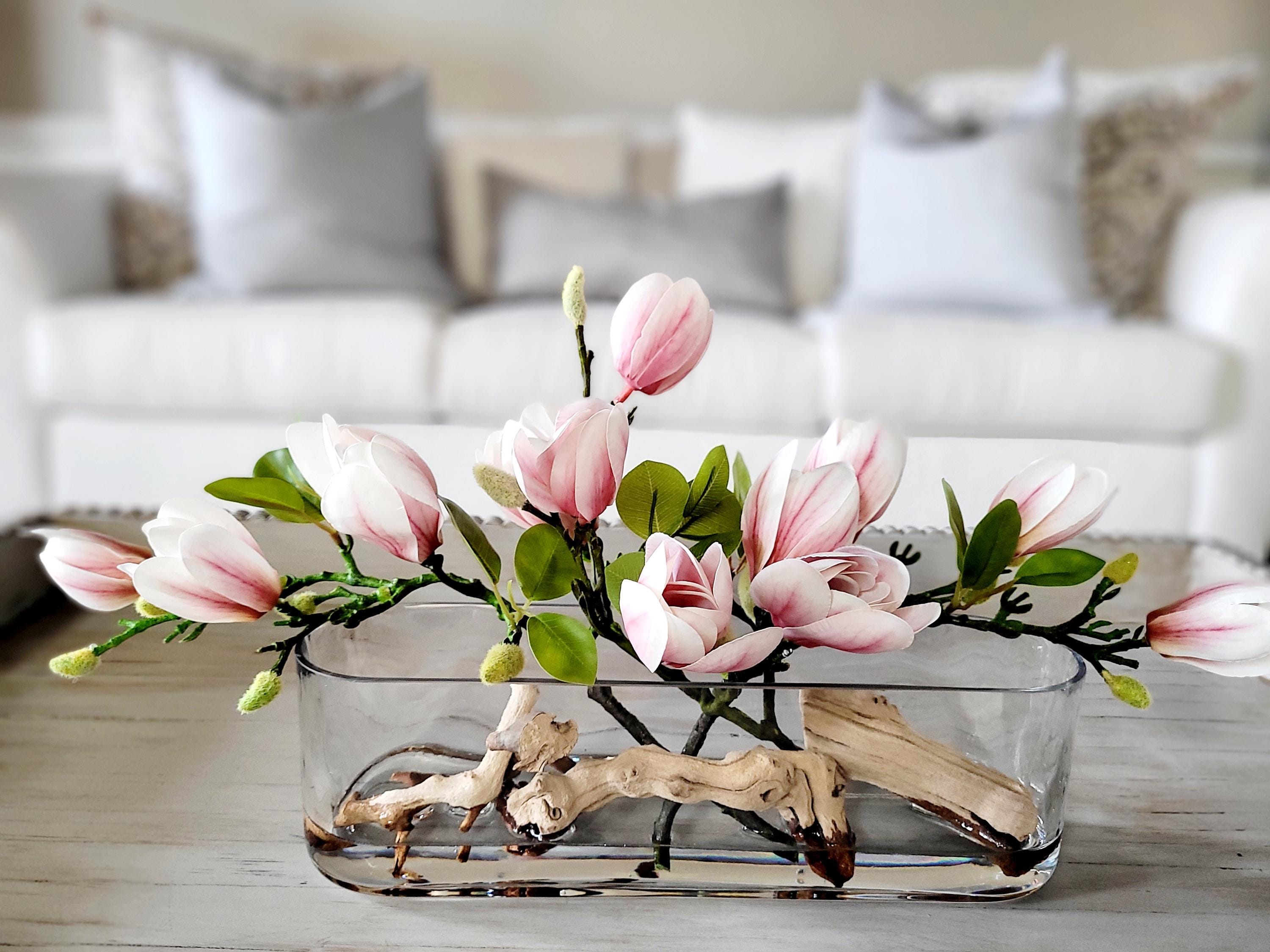 Dining Table Flower Arrangement home decor Luxury Flower Dining flower Magnolia Flower Long Glass container flower Realistic flowers water