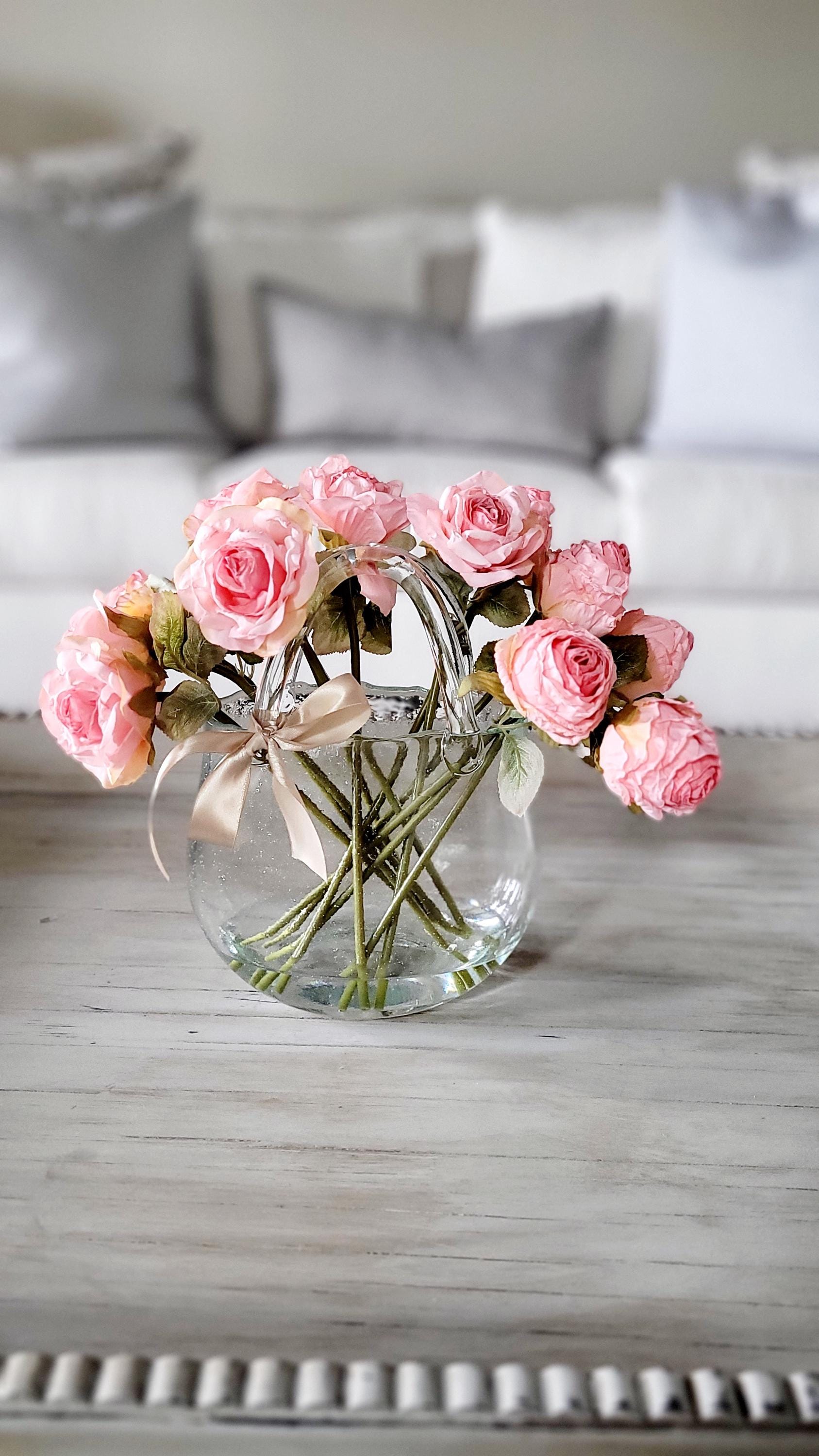 This Pink Rose Arrangement is a stunning vintage-style centerpiece for your dining table, featuring beautiful flowers and roses perfect for any occasion. It makes an ideal gift for mom, a birthday gift for a daughter, a sweet sixteen celebration, or a memorable 30th birthday arrangement. 🌿MATERIALS ā–Ŗ Silk faux flowers ā–Ŗ Choice of roses, tulips, or peonies ā–Ŗ Glass vase, quality resin faux water ____________________________ šŸ“VARIATIONS ā–Ŗ Each arrangement is meticulously packed to ensure its safety during transit ā–Ŗ Displayed arrangement measures 12' high , 8.25" wide and approximately,4.5"depth ā–Ŗ Flowers can be customized. Contact us for custom color options. Several lengths available. ____________________________ šŸ“¬ PACKAGING PROCESS ā–Ŗ Carefully packed with tissue paper and robust bubble wrap ā–Ŗ Secured within a custom-sized box for optimal protection during transit ā–Ŗ Typical processing time is 3-10 business days, followed by 2-3 days of shipping, depending on your location ā–Ŗ Tracking information included, ensuring your order is protected every step of the way ____________________________ ā—Need Your Order Sooner? ā— ✈ RUSH ORDERS ā–Ŗ For an additional $15 fee, prioritize your order to ensure it processes within 1-2 business days, bypassing the standard 3-10 business days. ā–Ŗ To activate rush processing, simply purchase "Quantity: 1" from our dedicated rush order listing. Follow the LINK BELOW to add the fee and expedite your order. RUSH ORDER FEE LINK: ____________________________ 🌷 CONNECT WITH US! Discover our extensive catalog featuring examples, customer photos, updates, and exclusive previews of new designs. Remember to tag us in your photos for a chance to be featured on our page! 🌷 šŸ–„ Find us on: - https://www.instagram.com/juliastreasuresstore - https://www.facebook.com/juliastreasuresstore - https://www.pinterest.com/juliastreasuresstore _________